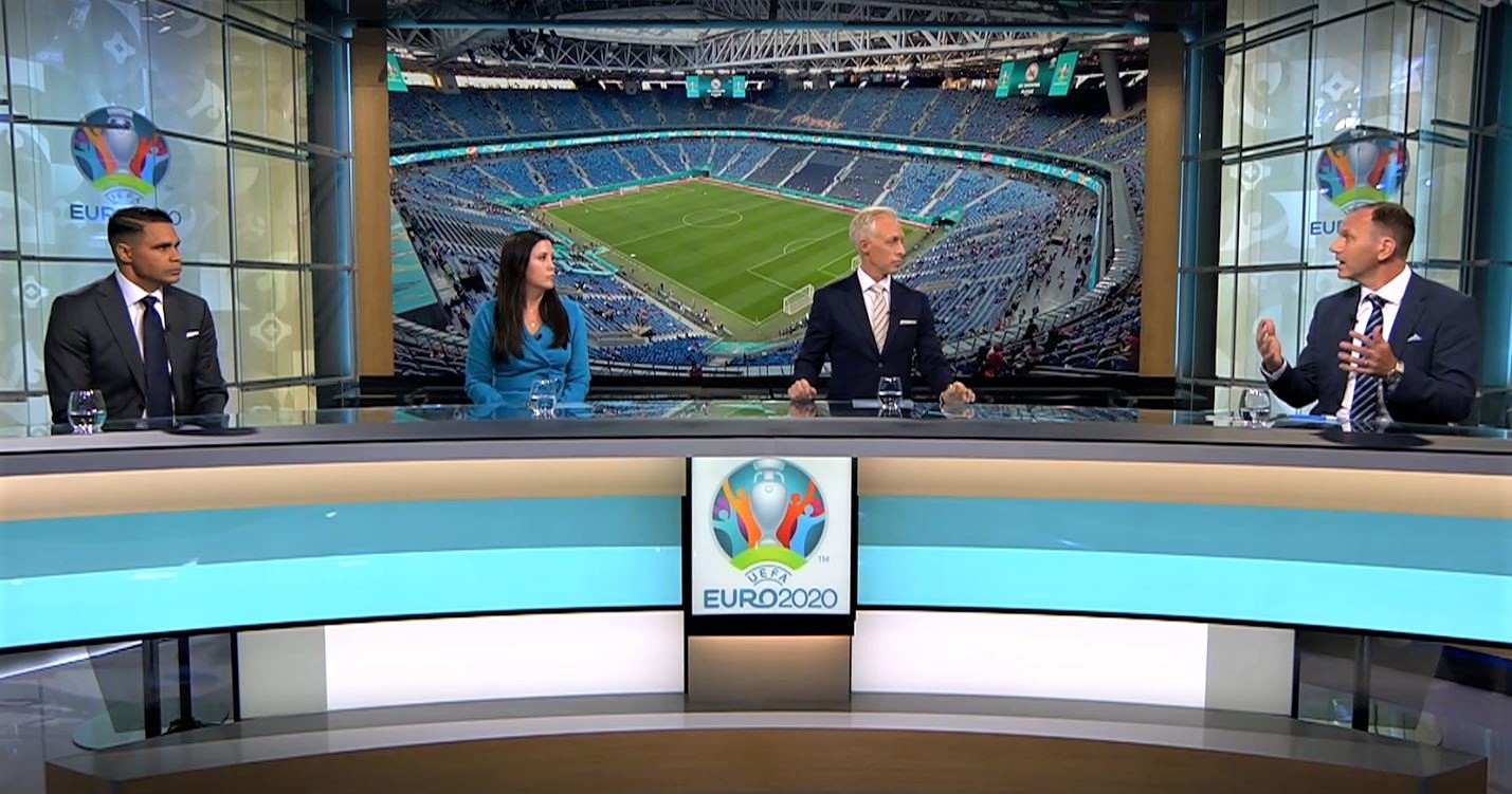 Hans bollande med de nödvändiga frågorna om tragedin, var en fröjd att skåda. Samtidigt vävde han in de ständiga rapporterna om tillståndet för Christian Eriksen. Fördelade frågorna med elegans och stor empati till sina experter i studion. Damlandslaget läkare, Mats Börjesson, som också är hjärtläkare kopplades in.